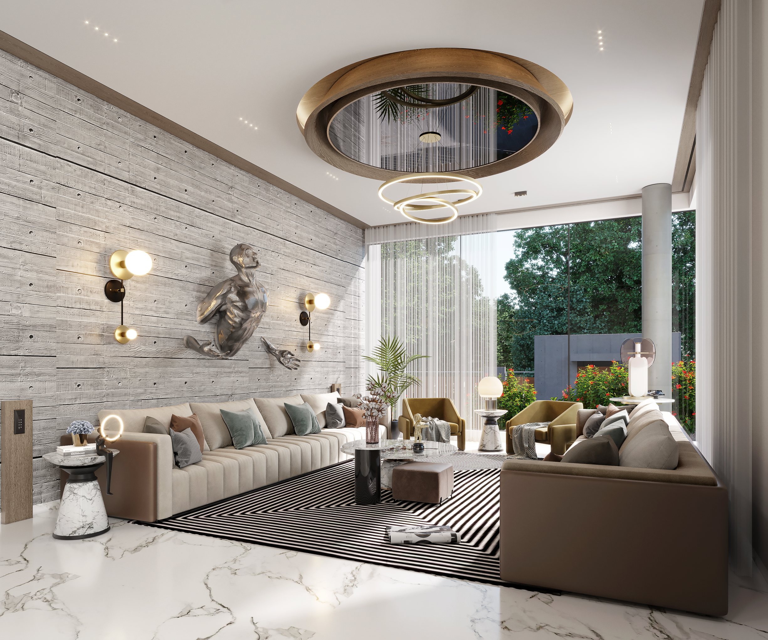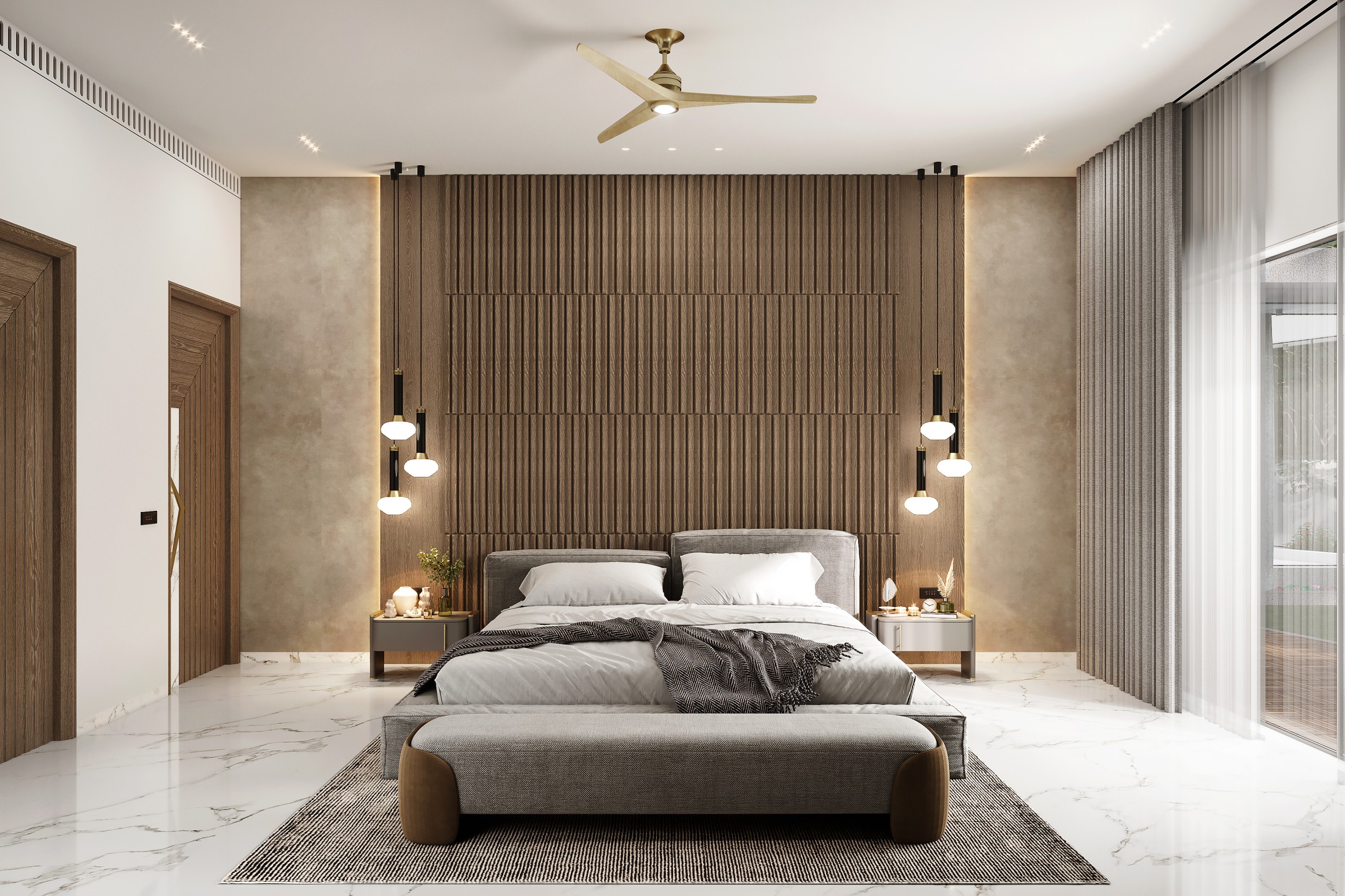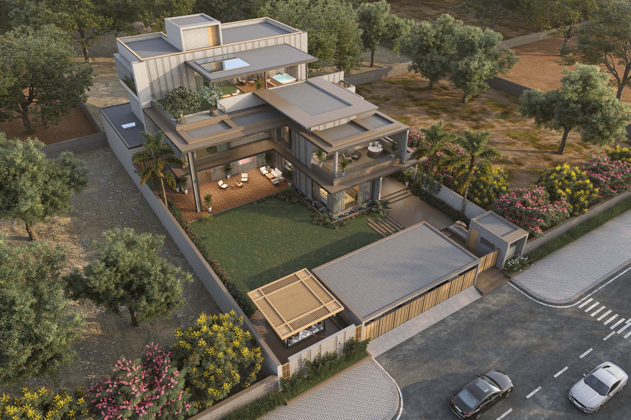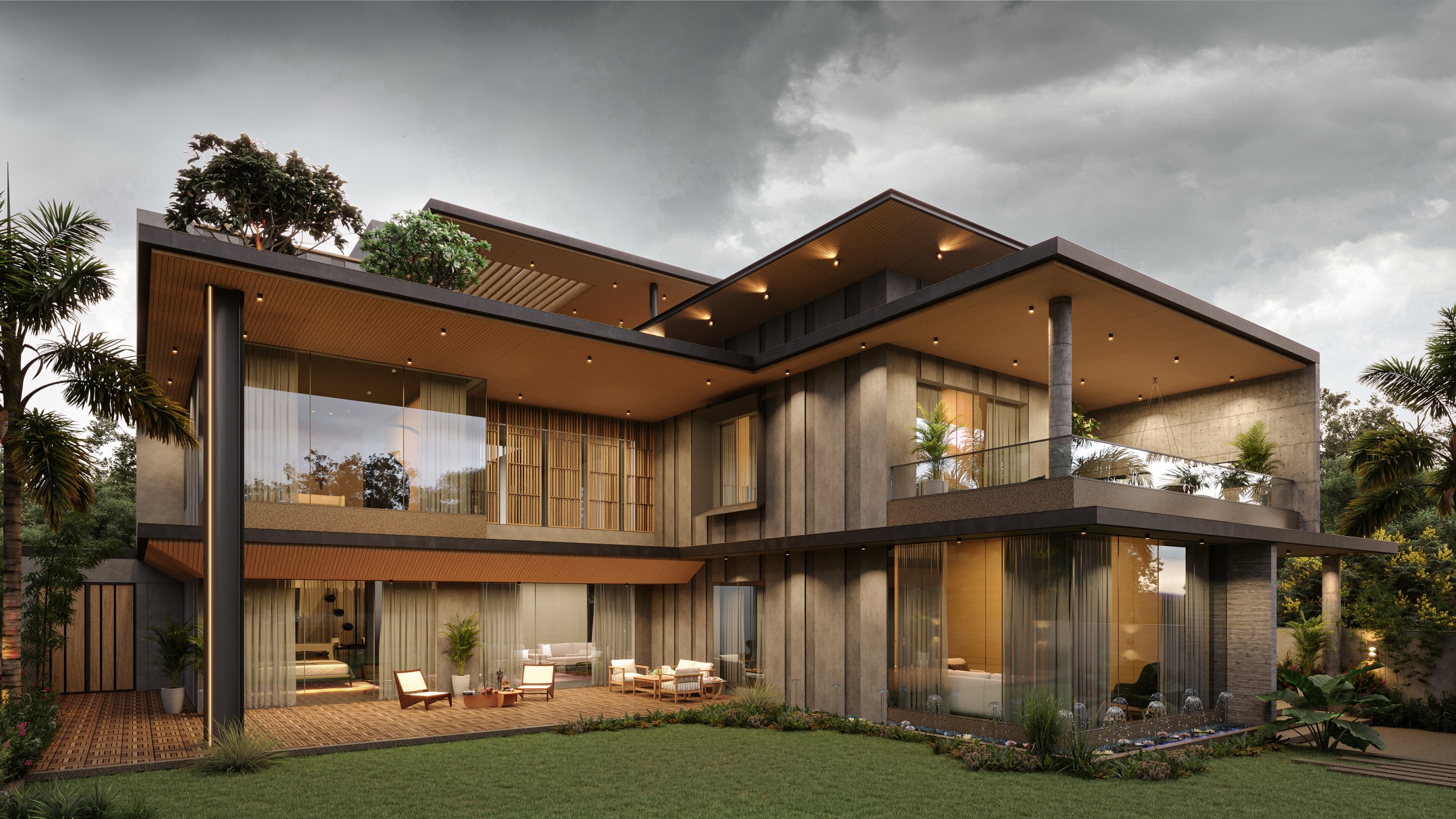 The Grid Houses, situated in Ahmedabad's Science City area, comprises of two identical residences on a single plot with different floor plans. Despite being separate, they blend harmoniously, creating a unified look from exterior and each maintains privacy although connected by garden in centre. The house features artistically carved Mural wall at the entrance, a modern appearance with exposed brick, travertine stone cladding and cantilever balcony extending from the structure, adds a touch of architectural elegance with luxurious interiors. Entering the house, you ascend a stairway nestled beside a lush garden. The transition from outdoors to indoors is marked by a verandah canopy offering a feeling of shelter and warmth. Every space in the residence is thoughtfully planned within horizontal grids based on Vastu principles, fostering a sense of spaciousness and openness throughout the interior, hence naming it “The Grid House”